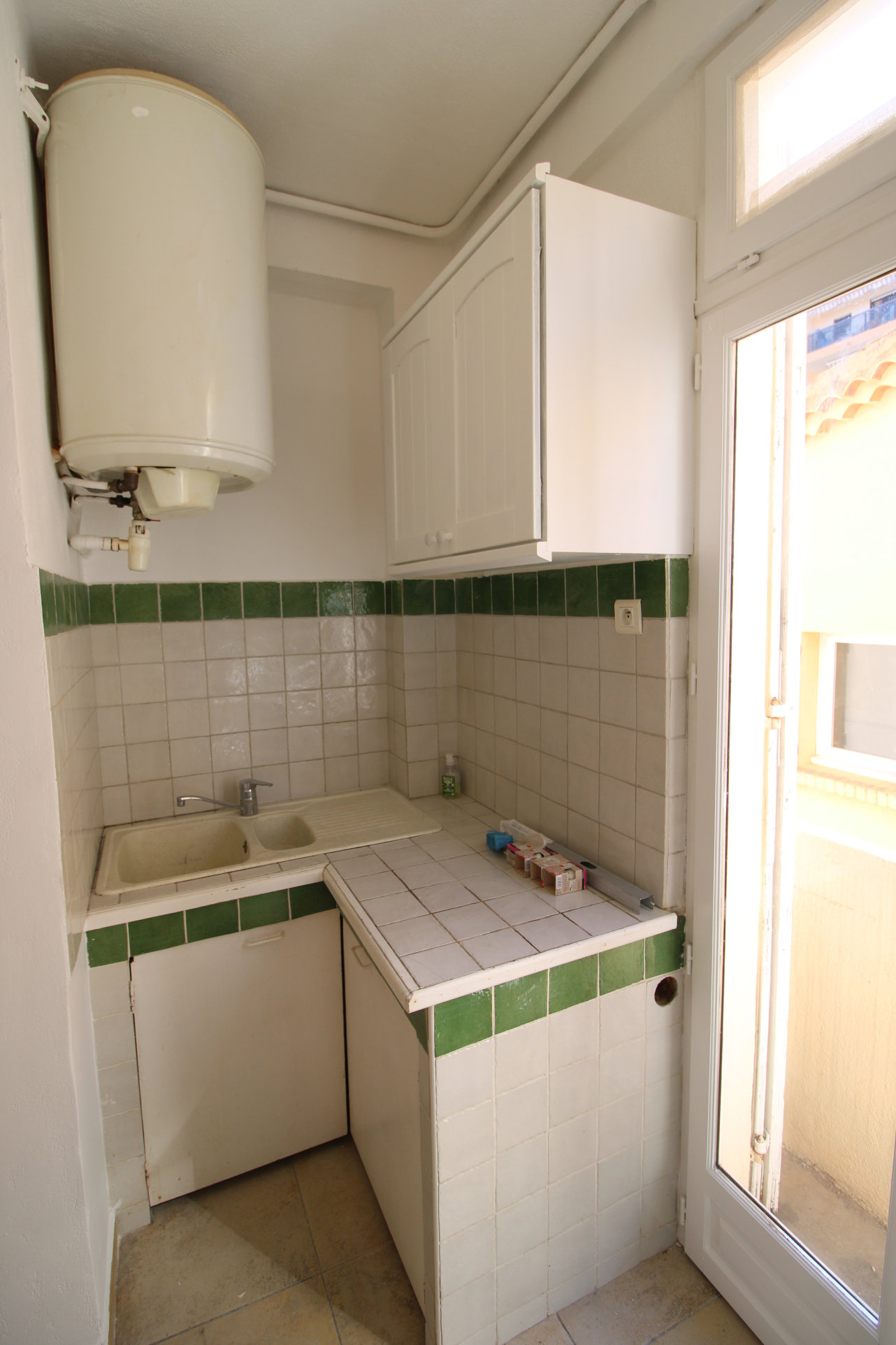 LE LAVANDOU, avenue des Martyrs de la Résistance, proche commerces et bord de mer. Appartement T2 de 33.57 m² au 1er étage sans ascenseur, comprenant : séjour avec placards aménagés, cuisine aménagée (avec plaque de cuisson vitrocéramique neuve) donnant sur balcon Ouest de 0.56 m², dégagement, chambre donnant sur terrasse Sud de 18.20 m², bureau, salle d'eau, wc. La chambre est équipée d'une climatisation réversible. Quelques travaux sont en cours dans l'appartement. LOYER = 700,00 euros (dont 35,00 euros de provision de charges, comprenant : TEOM et charges locatives copro). DÉPÔT DE GARANTIE = 665,00 euros. HONORAIRES D'AGENCE = 351,00 euros (dont 83,00 euros pour l'état des lieux entrant). AGENCE LOGIS SERVICE HYERES 04.94.12.36.10.