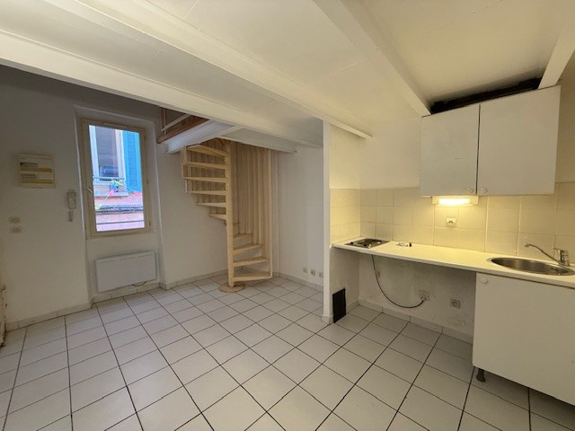 HYERES, centre historique, rue Prieuré. Appartement Faux T2 triplex de 32.90 m² au 1er étage, comprenant : - au 1er niveau : séjour avec coin cuisine aménagé et semi-équipé, escalier - au 2ème niveau : dégagement, salle d'eau avec wc, placard, escalier - au 3ème niveau : dégagement, coin chambre. LOYER = 382.00 euros (dont 22.00 euros de provision de charges, comprenant : TEOM + entretien et minuterie des parties communes). DÉPÔT DE GARANTIE = 360.00 euros. HONORAIRES D'AGENCE = 513.00 euros (dont 118.00 euros pour la réalisation de l'état des lieux entrant). AGENCE LOGIS SERVICE HYERES 04.94.12.36.10