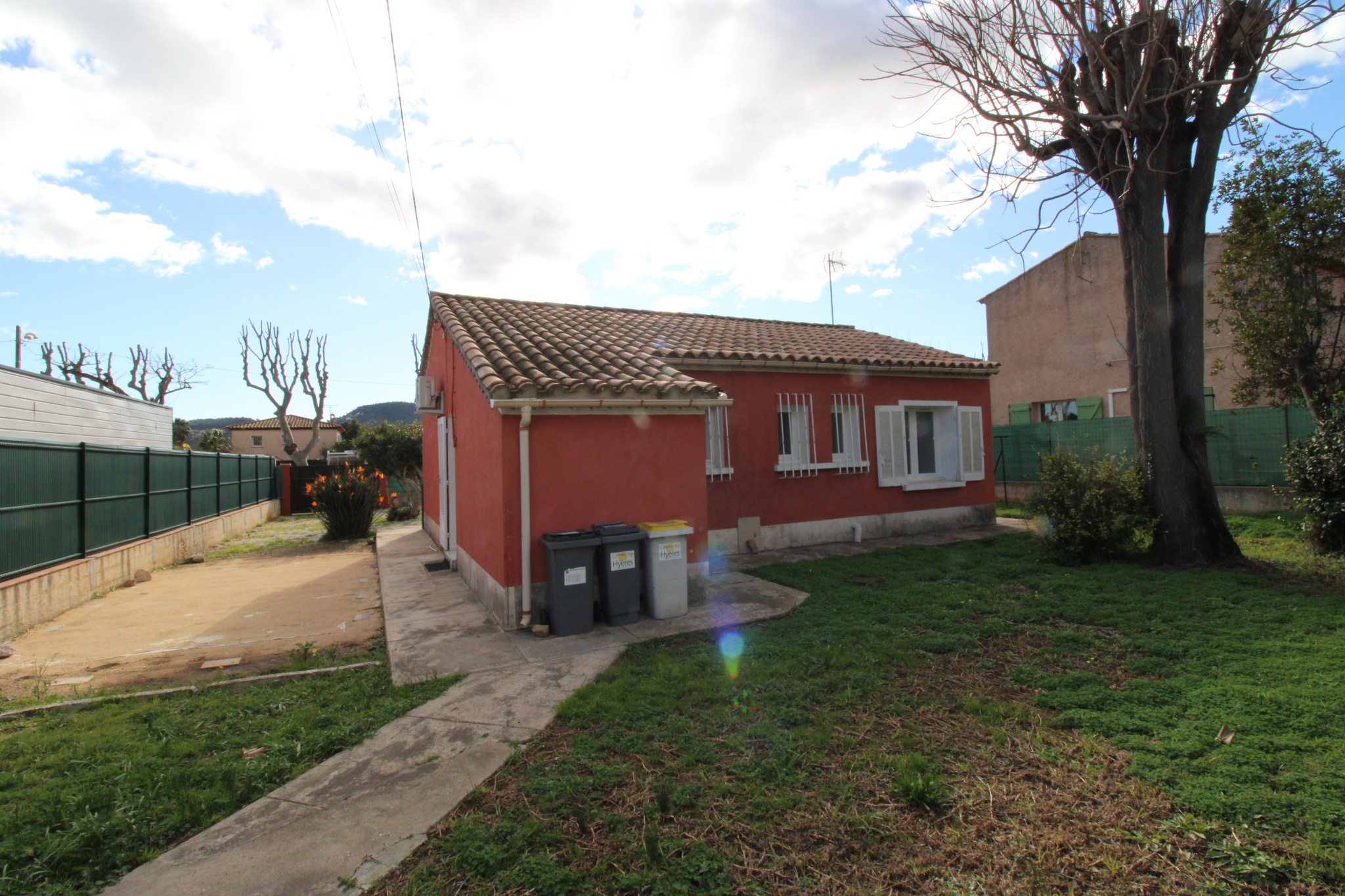 SOUS-OFFRE. HYERES, avenue de Toulon. Maison individuelle de plain-pied de 56.69 m², sur terrain (piscinable) arboré et clôturé de 479 m² avec cabanon et barbecue. Possibilité de sur-élever la maison pour agrandir. La maison de type T3 comprend : séjour avec coin cuisine aménagé et semi-équipé accédant à un cellier donnant sur jardin arrière, dégagement avec trappe d'accès aux combles, deux chambres avec placard aménagé dans chaque chambre, salle d'eau, et wc. PRIX DE VENTE : 379 600,00 euros (dont 14 600.00 euros TTC d'honoraires d'agence à la charge de l'ACQUEREUR). AGENCE LOGIS SERVICE HYERES 04.94.12.36.10