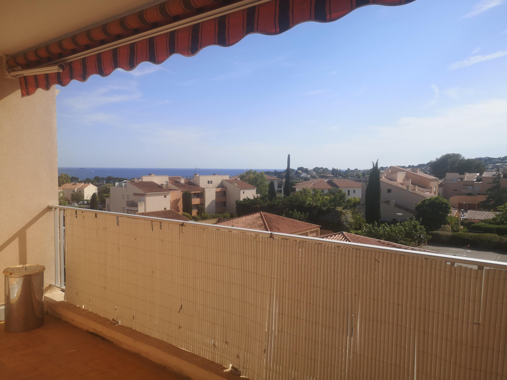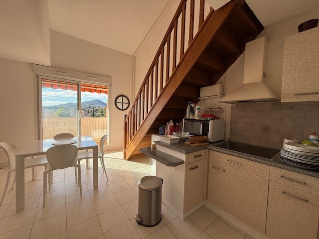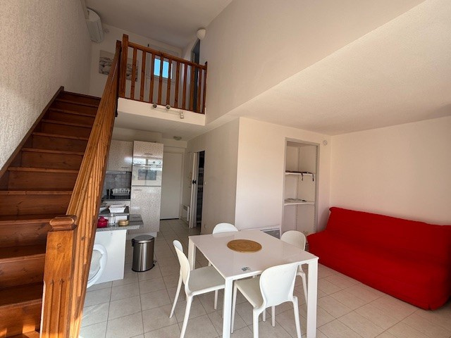 CARQUEIRANNE, Chemin du Petit Lac. Appartement de type 2 MEUBLE en duplex au 2ème étage SANS ASCENSEUR de 38.76 m², comprenant : entrée, cellier, wc indépendant, salle d'eau, salon avec coin cuisine aménagé et équipé (four, four micro-ondes, lave-linge, plaques de cuisson induction, hotte etc...), terrasse d'environ 7.60 m² avec vue mer exposée sud/ouest. A l'étage : palier avec coin bureau, chambre mansardée avec placards. LIBRE LE 17/11/2025. LOYER : 759.58 euros (dont 59.00 euros de provisions sur charges comprenant : TEOM, charges de copropriété). DÉPOT DE GARANTIE : 700.58 euros. HONORAIRES : 503.00 euros (dont 116 euros pour la réalisation de l'état des lieux entrant). AGENCE LOGIS SERVICE HYERES 04.94.12.36.10